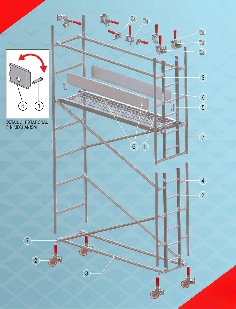 – Braces: Braces are diagonal tubes that are fixed between the standards and ledgers. They help reinforce the scaffolding and prevent lateral movement.